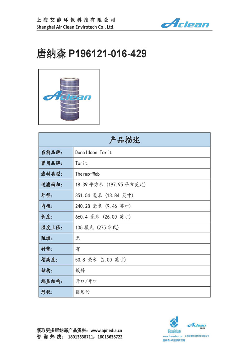 唐納森耐高溫濾筒P196121